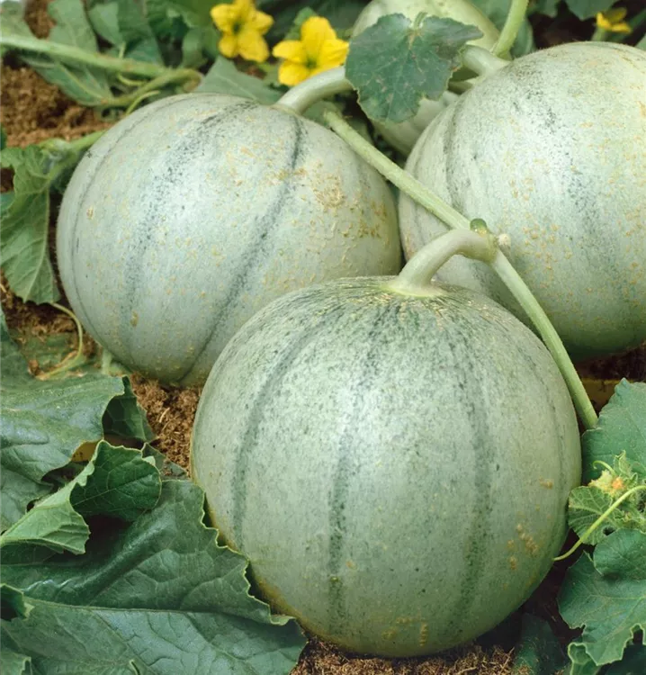 Die Zuckermelone (Cucumis melo) bildet Früchte, die süß schmecken und bereits ab Juli geerntet werden können. Für das optimale Wachstum der Zuckermelone werden ein sonniger Standort und durchlässiger, nährstoffreicher Boden benötigt.