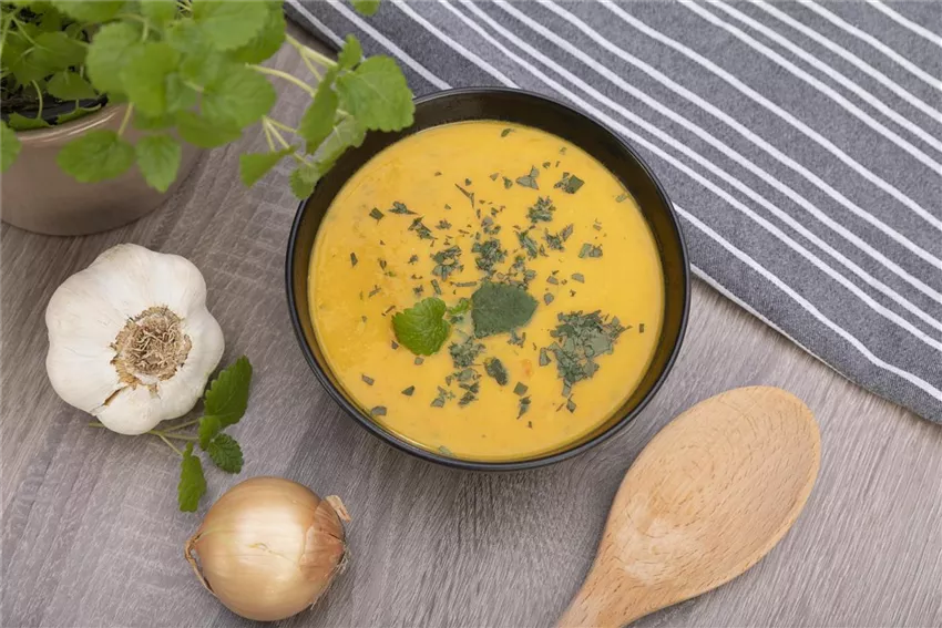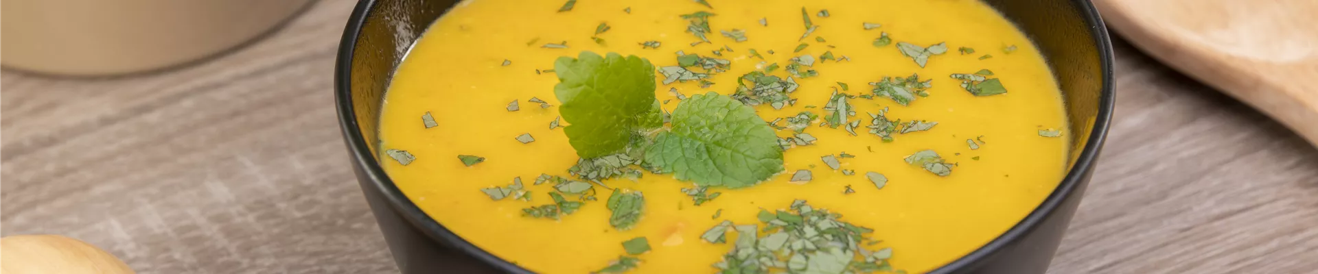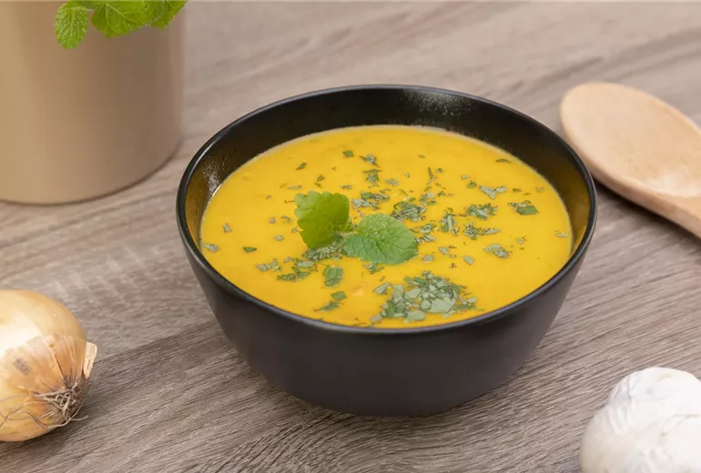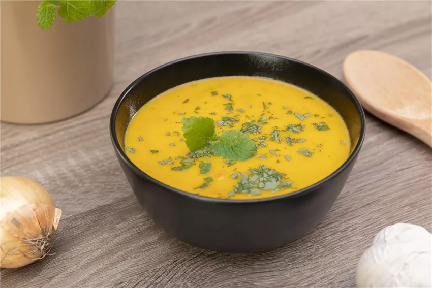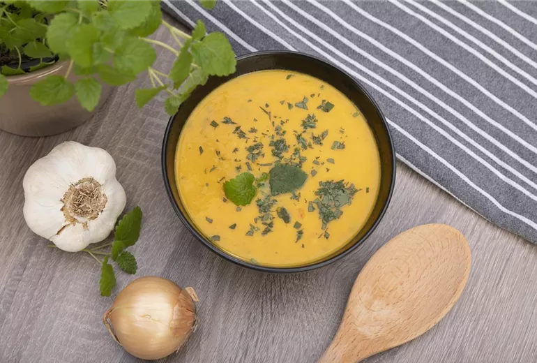 Als Klassiker in der Küche lässt sich die Zitronenmelisse in vielen Gerichten einbringen. Sie passt perfekt zu Geflügel und Wild, aber in einer Kürbissuppe sorgt die Zitronenmelisse für eine ganz besondere Frische.