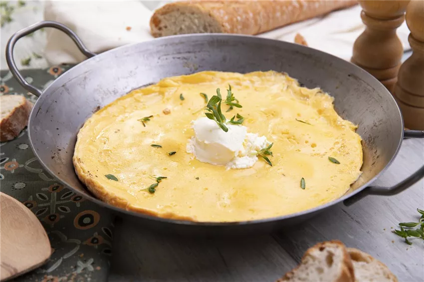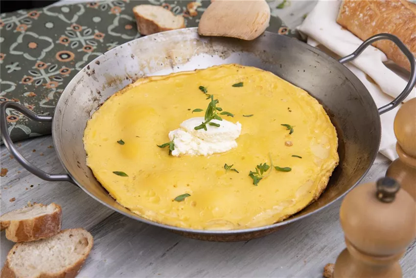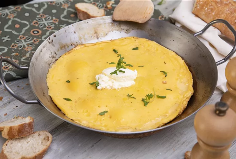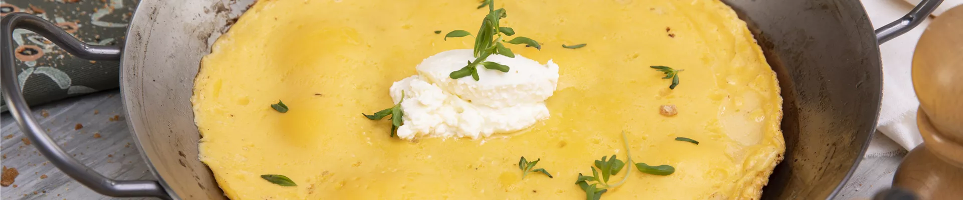 Omelett mit frischem Bohnenkraut und Ziegenkäse