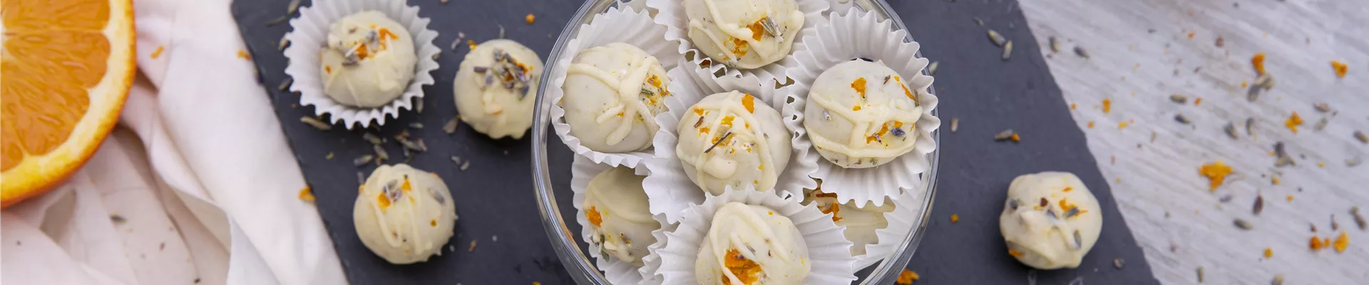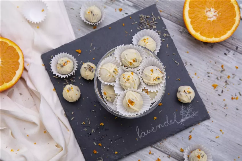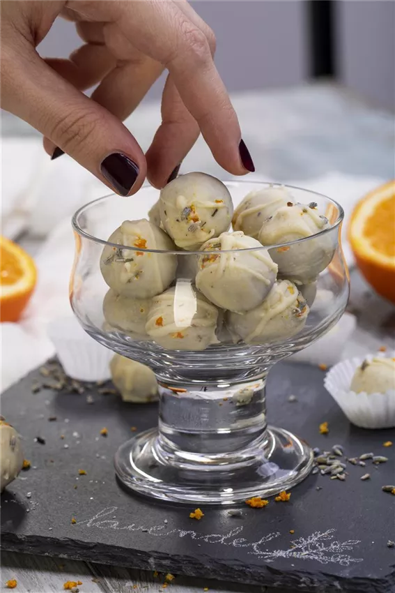 Orangen-Trüffel mit Lavendel