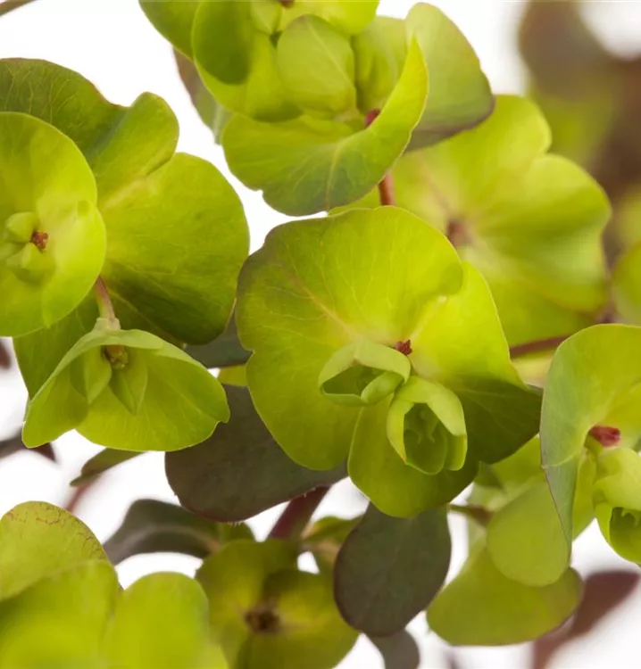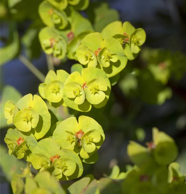 Euphorbia amygdaloides bildet gelb-grüne Blüten ab April.