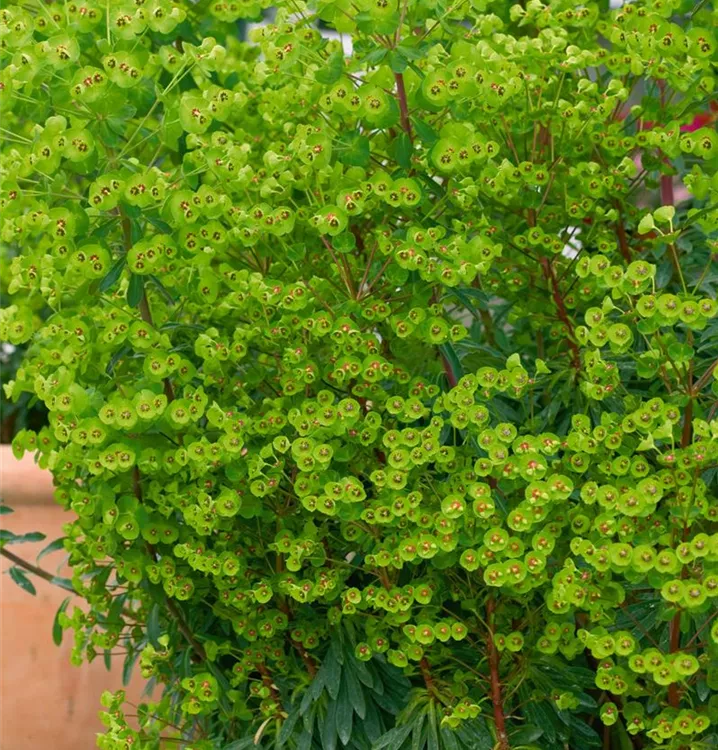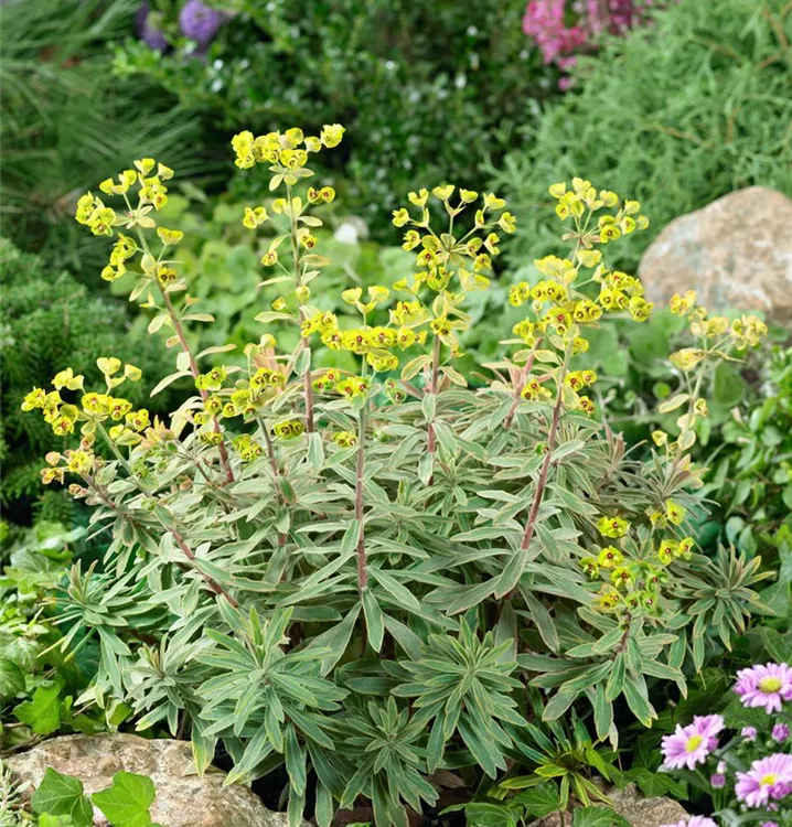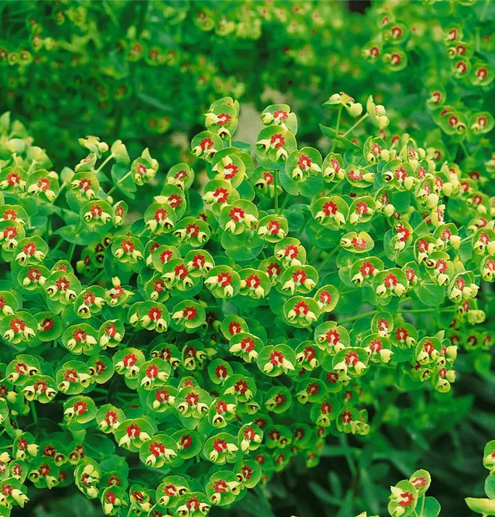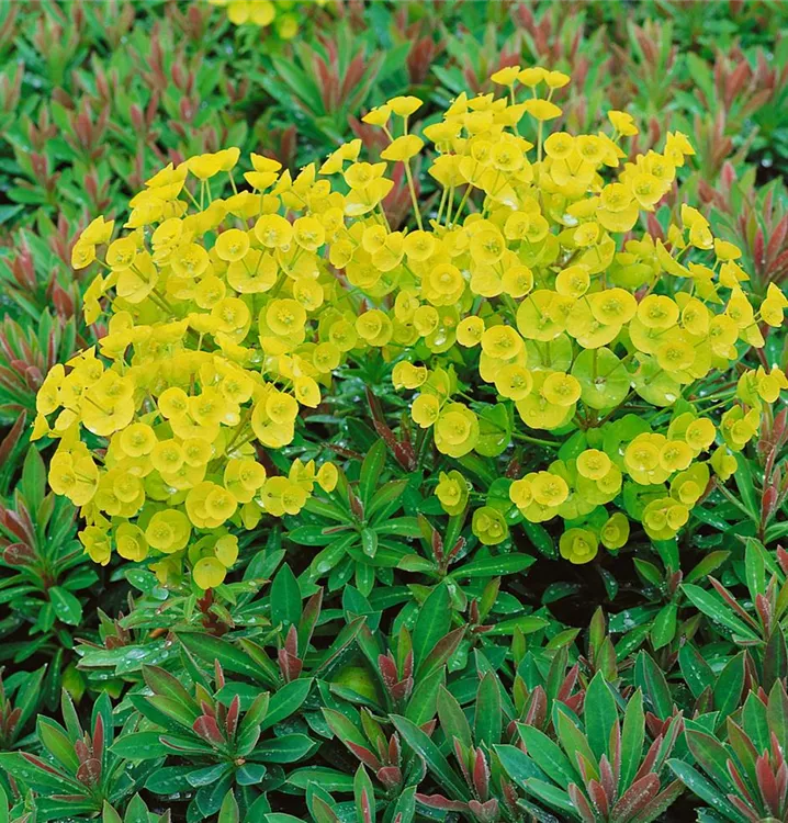 Euphorbia x martinii 'Kolibri' bildet gelbe Blüten ab Mai.