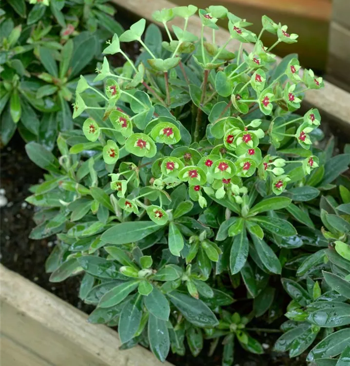 Euphorbia x martinii 'Kolibri' wird den stark giftigen Pflanzen zugeordnet.